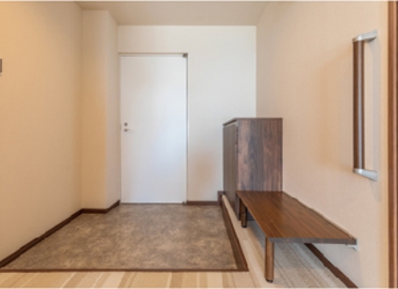 ■玄関扉は既存の内開きを尊重し、玄関土間を広げました。